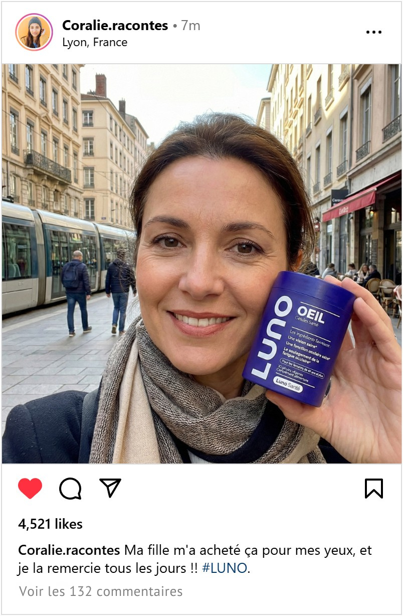 Luno Santé de l'oeil contient 12mg de lutéine — la dose EXACTE utilisée dans les études cliniques qui ont restauré la vision de milliers de femmes.
